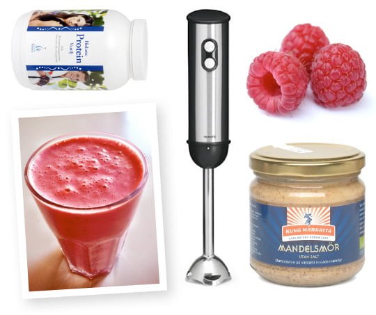 Mixa allt. Späd med vatten om det behövs. Perfekt efter träning eller frukost om man inte är sugen på ägg.
