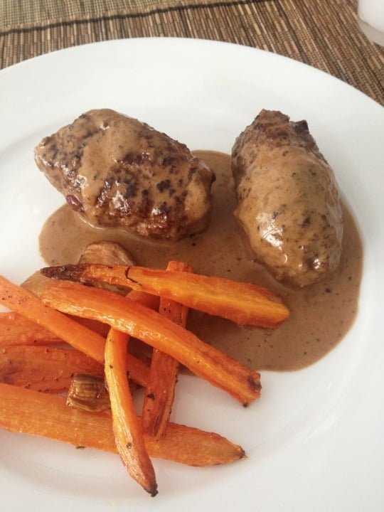 Nörfärsbiffar med rostade morötter och vitlök