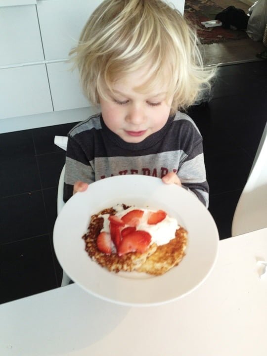 Glädjen när barnen vill ha ägg och keso till mellanmål. Ok, inte som det är, utan som plättar. Men det räknas! Med vaniljpulver, vispgrädde och jorgubbar. Inget extra socker, inget sötningsmedel.