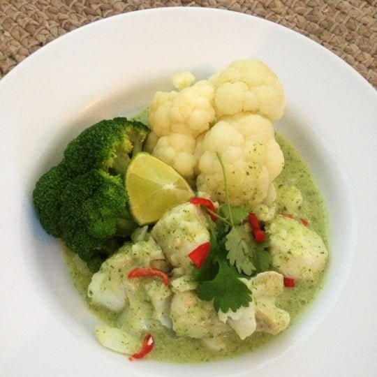 Torsk i kokos med koriander, ingefära och lime