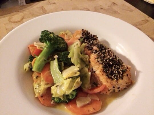 Gör så här: Sätt ugnen på 150°C. Lägg laxfiléerna i en form, salta och peppra och strö över sesamblandningen. Laxen innertemperatur ska upp till ca 56°C.