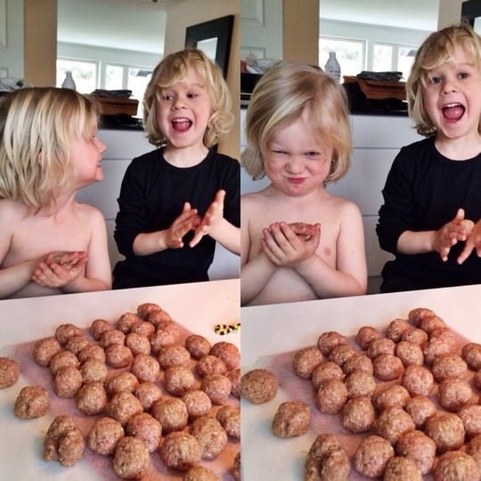 Riv löken och blanda med ägg, tomatpuré och kryddor. Sen är det bara att låta barnen rulla!