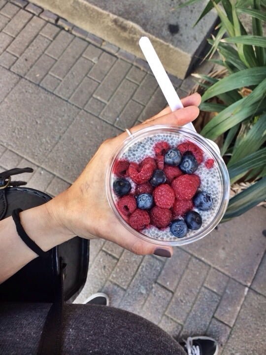 När man går på stan, blir akut-hungrig och hittar en chiapudding på mandelmjölk och bär! Det är lycka!