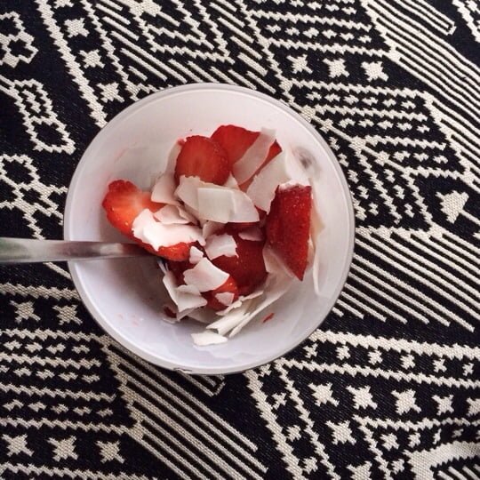 Jordgubbar, kokoschips och lite pressad lime.