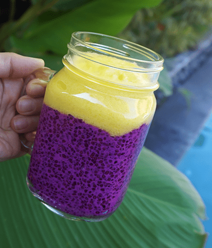 Att vakna och veta att denna står och väntar på en i kylen! Jag gjorde min chiapudding på röd drakfrukt och kokosmjölk. Men det går lika bra med tex tinade hallon, jordgubbar eller kiwi.