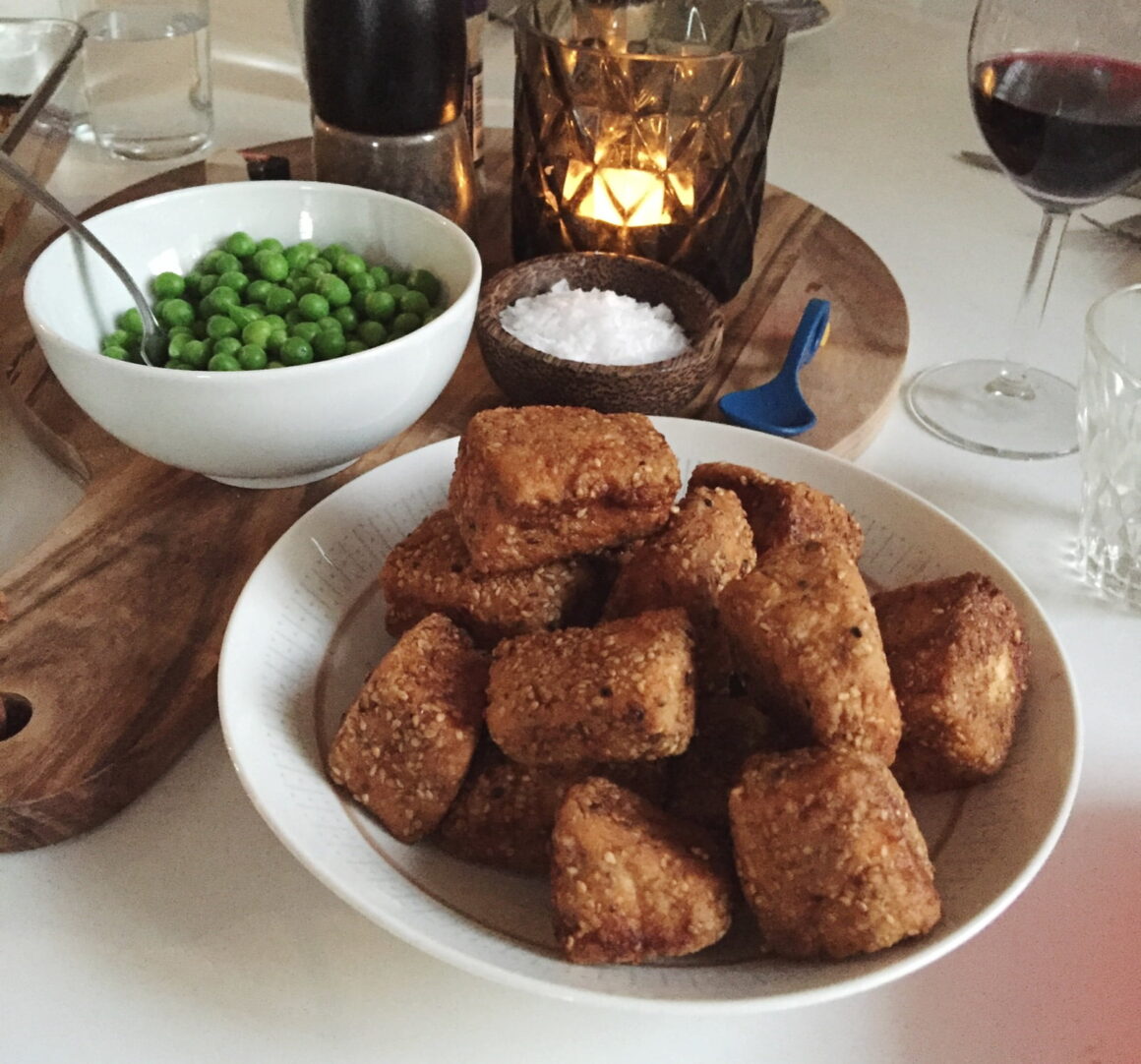 Mycket fjäsk för barnen på senaste… Hade planerat att göra lax med fänkål, tomat och citron, men istället blev det laxnuggets. Kände på mig att det skulle ge en behagligare middag… Och mycket riktigt. Barnen älskade det och norpade åt sig i stort sett alla bitar. Vi vuxna fick nöja oss med vin. Jaja, hellre det. Här kommer recept: